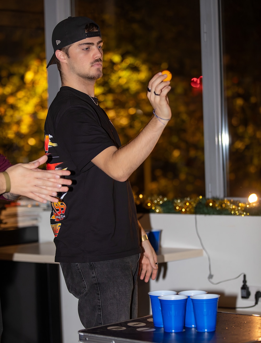 La soirée s’est articulée autour de plusieurs temps forts propices à la convivialité et aux échanges. Étudiant(e)s, intervant(e)s et membres du staff se sont défié(e)s au ping-pong, au water-pong ou encore au baby-foot, tandis que d’autres se retrouvaient autour de jeux de cartes exclusifs ou du jeu « trouve ton double », favorisant les rencontres entre différentes promotions et écoles. Un espace karaoké a également permis aux plus audacieux de révéler leurs talents dans une ambiance décontractée.